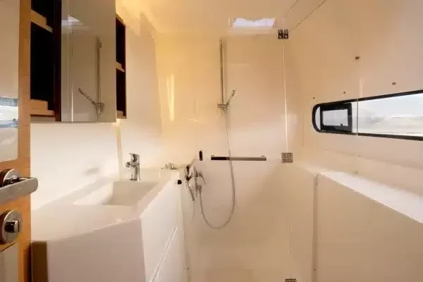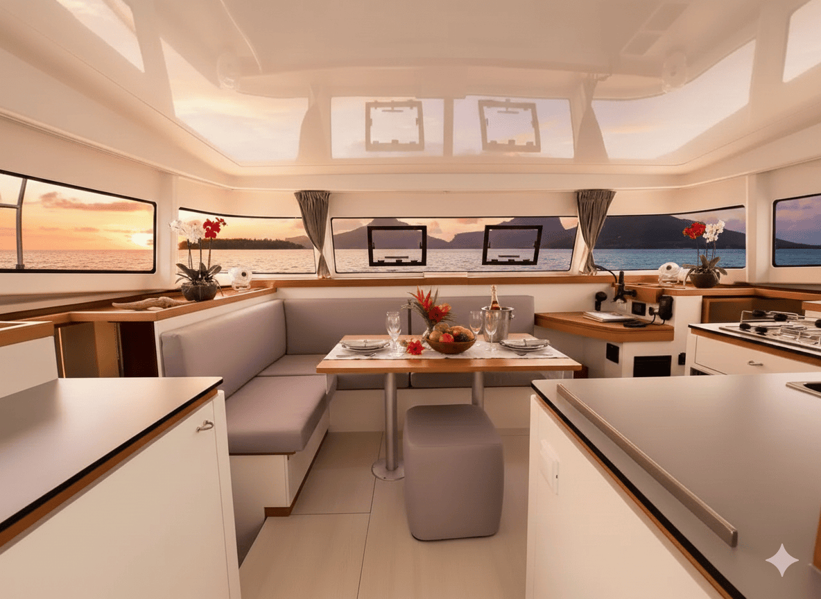Off-grid comfort: 105 L/h watermaker, 2.4 kW solar, and optional Starlink keep you powered, connected, and independent.
