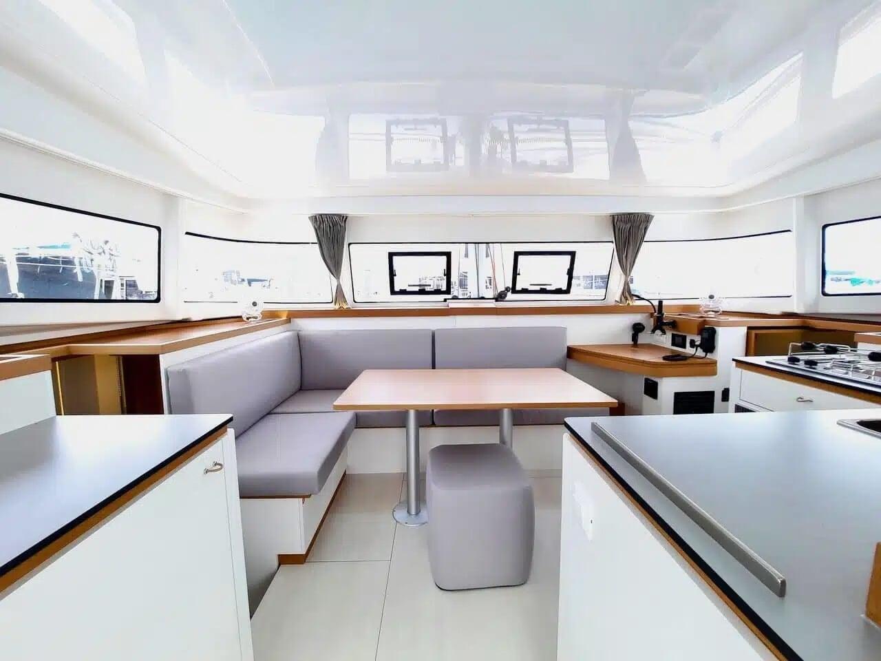 Premium onboard experience: Quality linens, plush upholstery, and a fully equipped galley - arrive and sail.